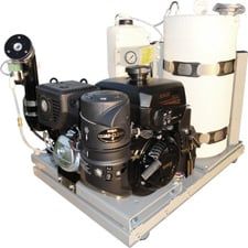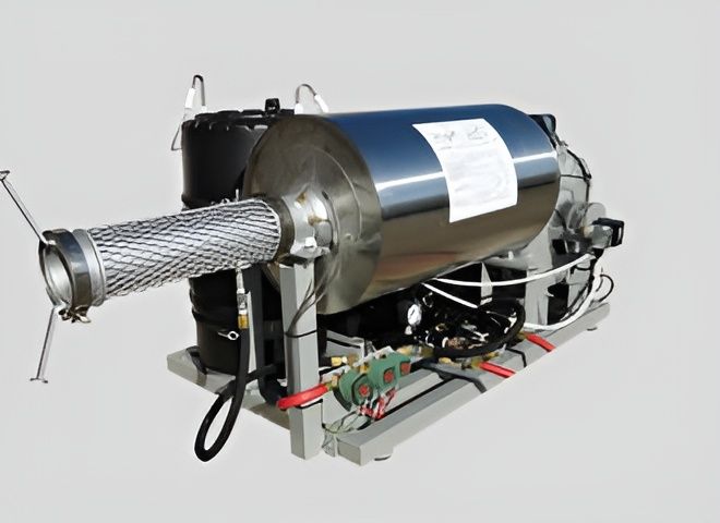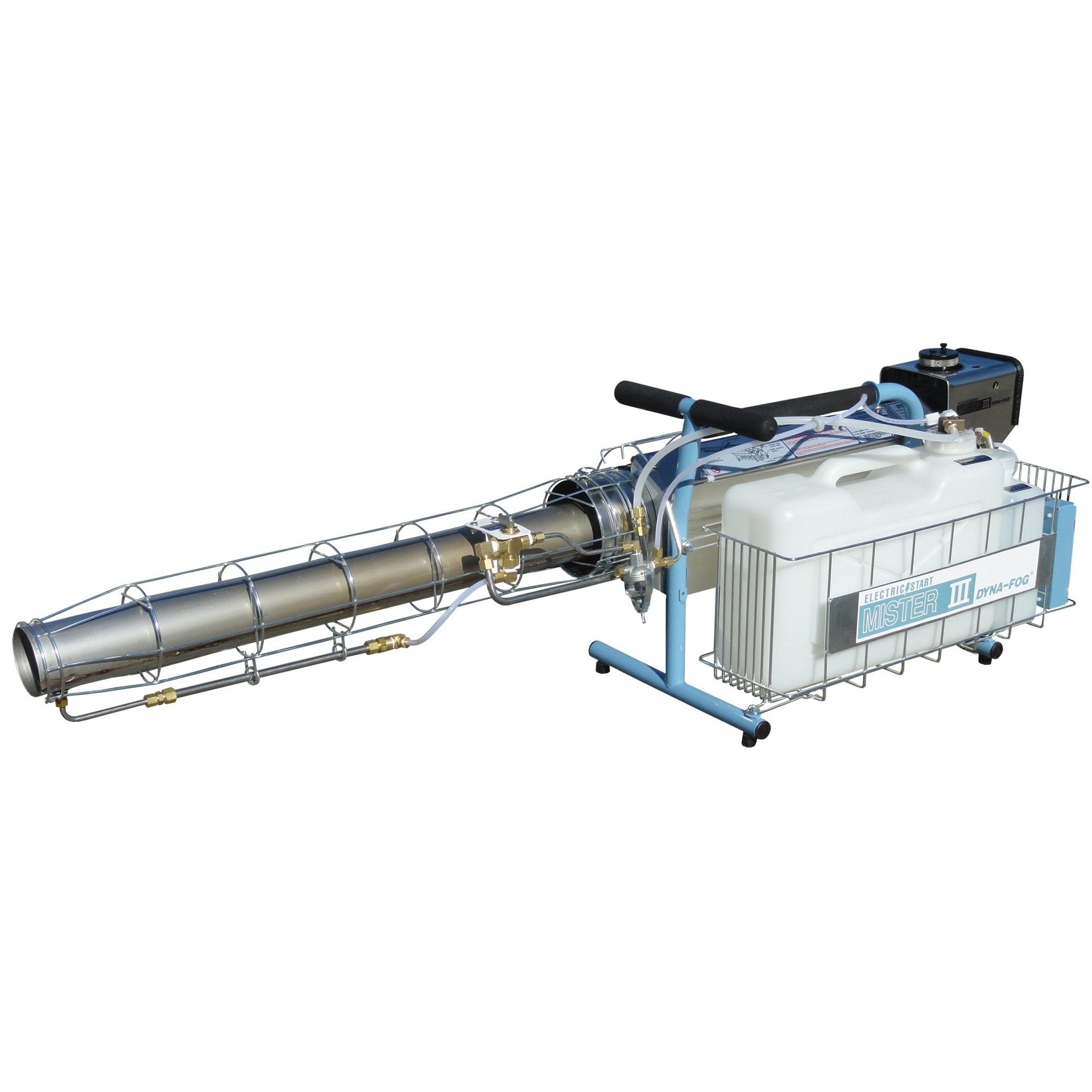 Thermal foggers, use heat to vaporize a fogging solution and spray it out as a visible fog cloud with a .05–10-micron range particle size. Thermal foggers are equipped with a heat barrel that is preheated to high temperatures using propane, gas, or electricity depending on the type of fogged. When the liquid fogging solution is pumped into the heat barrel it is instantly vaporized. This allows the fogger to produce large count of particles in extremely small size, which all together forms a dense cloud of fog which resembles smoke. Thermal foggers produce smaller particles which means they take longer to fall to the ground. The smaller thermal fog particles are useful if you are spraying for mosquitoes, as the longer the particles are suspended in the air, the more likely they are to contact the mosquitoes. However, the near invisible fog generated by a cold fogger may be better suited for neighborhoods where the highly visible smoke produced by a thermal fogger may cause alarm. Cold foggers are quieter than thermal foggers.